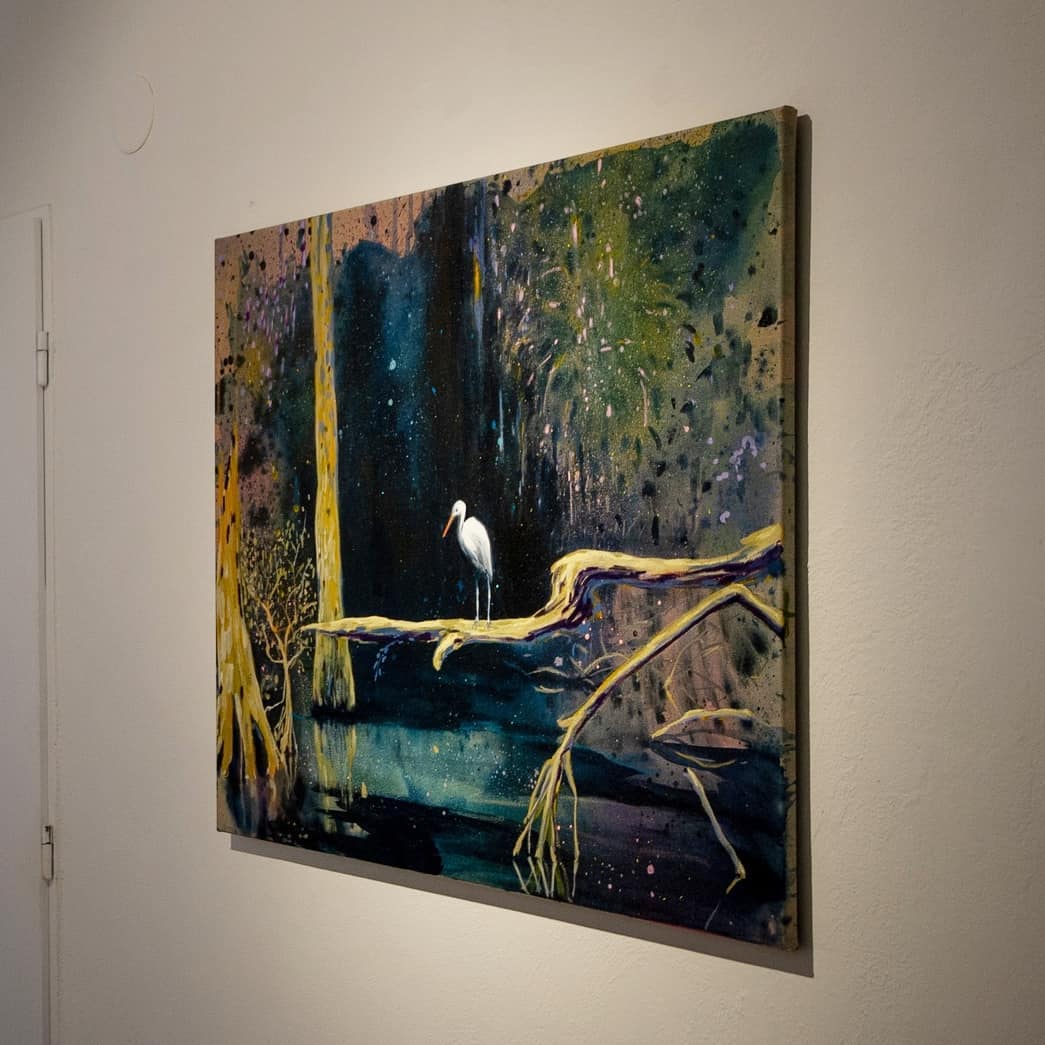 Mésároš pozorne sleduje zmeny zdanlivo nemenných miest a prostredí, zachytáva ich v čase fotoaparátom, zbiera ich a odkladá, aby ich neskôr na plátne oživila útržkami možných rozprávaní prostredníctvom postáv, predmetov, ale aj atmosférických zmien na oblohe. Využíva repertoár motívov, ku ktorým sa vracia, a prostredníctvom ktorých skúma možnosti ich ďalšieho rozvíjania, reinterpretácie, rozvetvovania do košatých korún osamelých stromov, ktoré tu však nie sú iba obyčajnou krajinárskou kulisou.