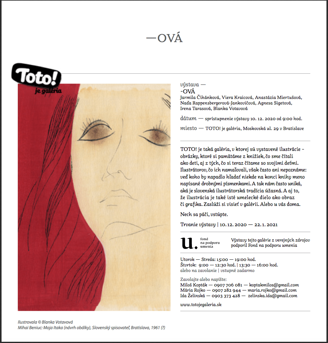 Priestor, ktorý dostávajú ženy – umelkyne v inštitucionalizovanom prostredí galérií a múzeí sa v posledných rokoch zväčšuje a rozširuje. Okrem kvality a relevantnosti diel týchto autoriek je zaujímavý aj pohľad na ich vtedajšiu i terajšiu rodovo podmienenú pozíciu v rámci špecifických politických, spoločenských a kultúrnych kontextov, v tomto prípade časti bývalého Východného bloku. Jarmila Čihánková, Viera Kraicová, Anastázia Miertušová, Naďa Rappensbergerová, Agnesa Sigetová, Irena Tarasová a Blanka Votavová tvorili v zlomových obdobiach šesťdesiatych a sedemdesiatych rokov vo vtedajšom Československu plnom politických otepľovaní a ochladzovaní, mašinérie centralizovaných štátnych objednávok, zväzov a zákazov. Zároveň tvorili aj v dobe, ktorá priala rozmachu knižnej ilustrácie, kedy napríklad vzniká medzinárodné Bienále ilustrácie Bratislave (1967). Ilustrované boli vo veľkej miere nielen knihy pre deti a mládež, ale aj poézia, historické eposy, detektívky, romány, ale aj faktografická literatúra. Medzi vystavujúcimi umelkyňami sú autorky, ktoré sa primárne venovali iba ilustrácii, ale aj také, ktoré ilustrovali popri svojej voľnej maliarskej či grafickej tvorbe. Boli síce socialisticky emancipované prácou, no ostali aj dvojito zaťažené – kvôli nezmenenému prístupu k starostlivosti a deľby práce v rámci rodiny a v domácnosti. Aj keď v slovenskom kontexte nejde v týchto rokoch o vyslovene feministické pozície, svoju inakú pozíciu oproti svojim mužským kolegom si bez pochýb uvedomovali aj ony.