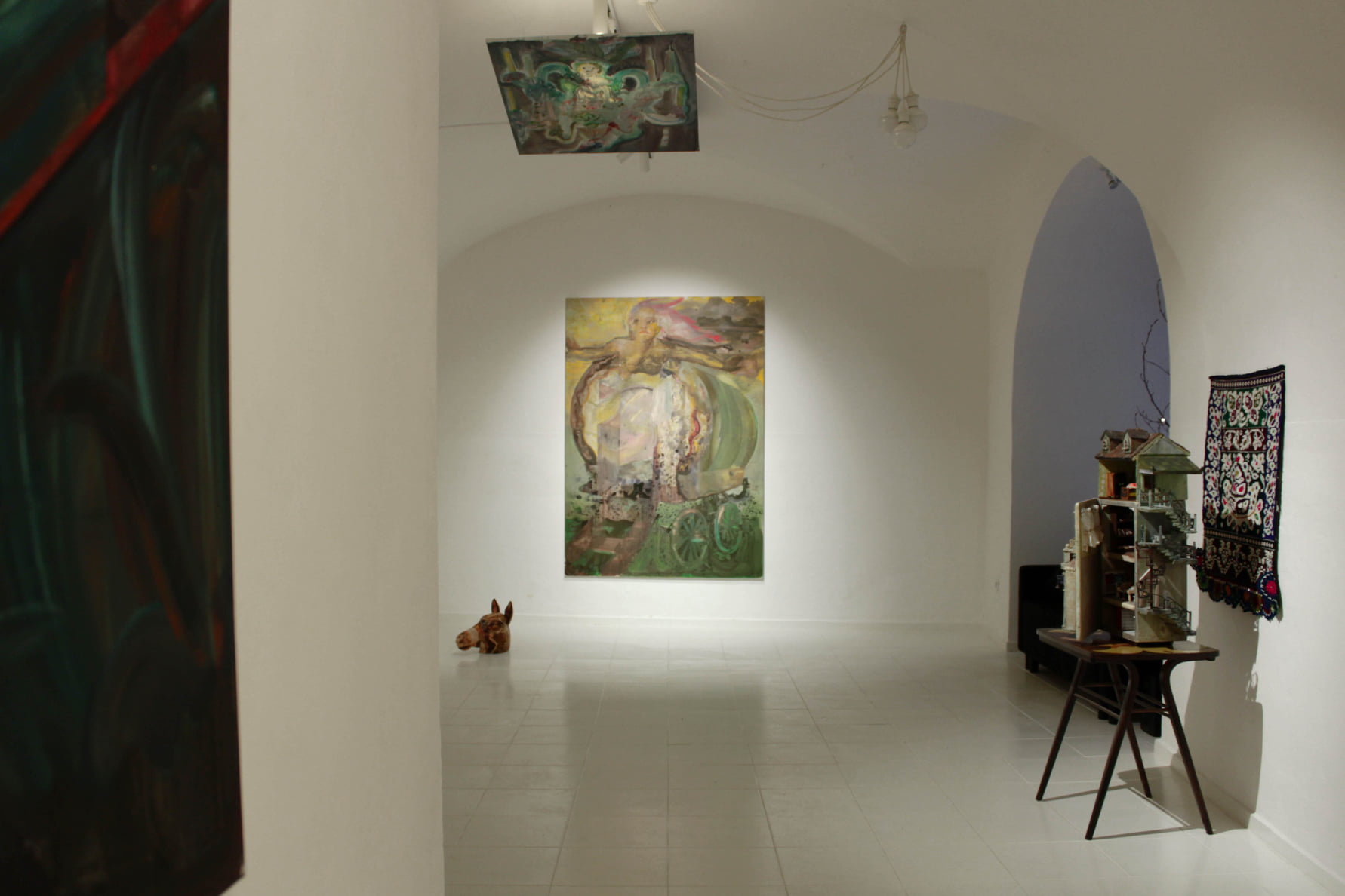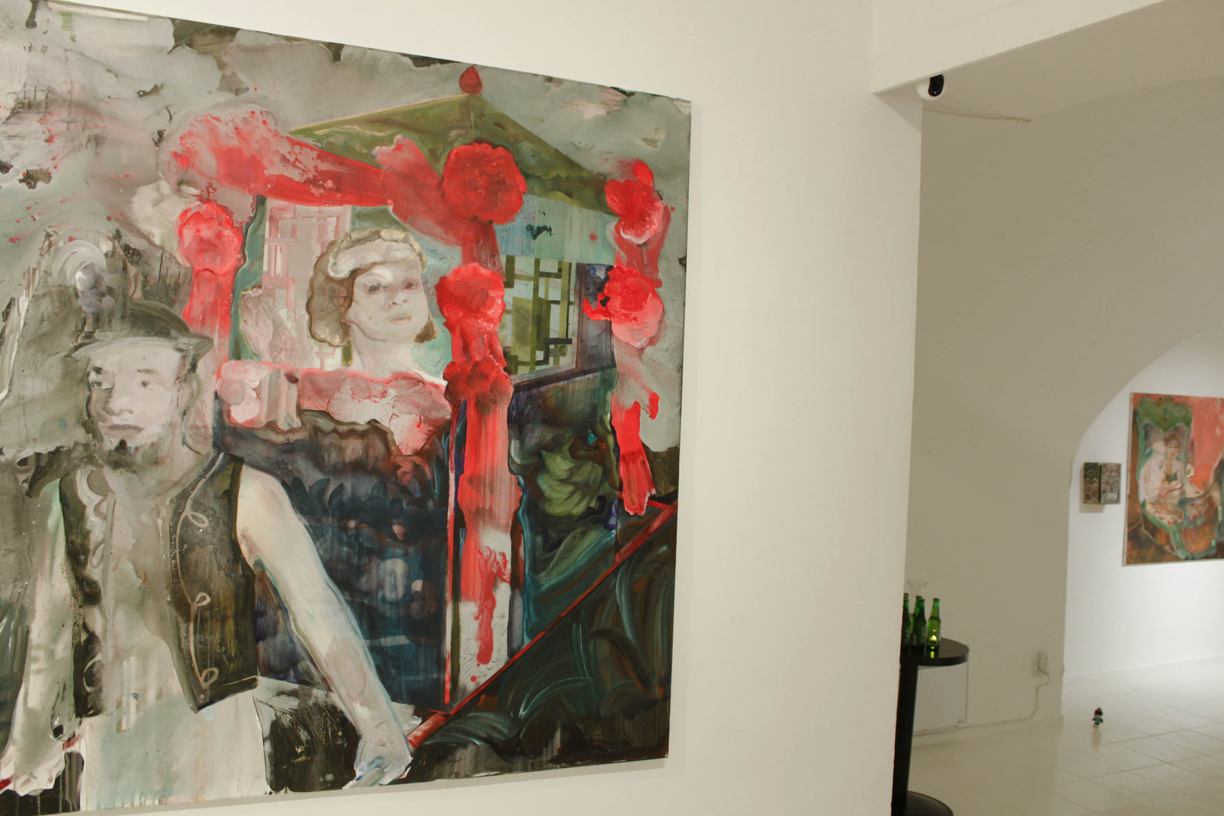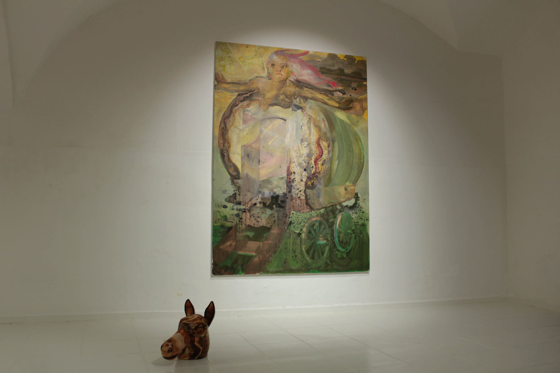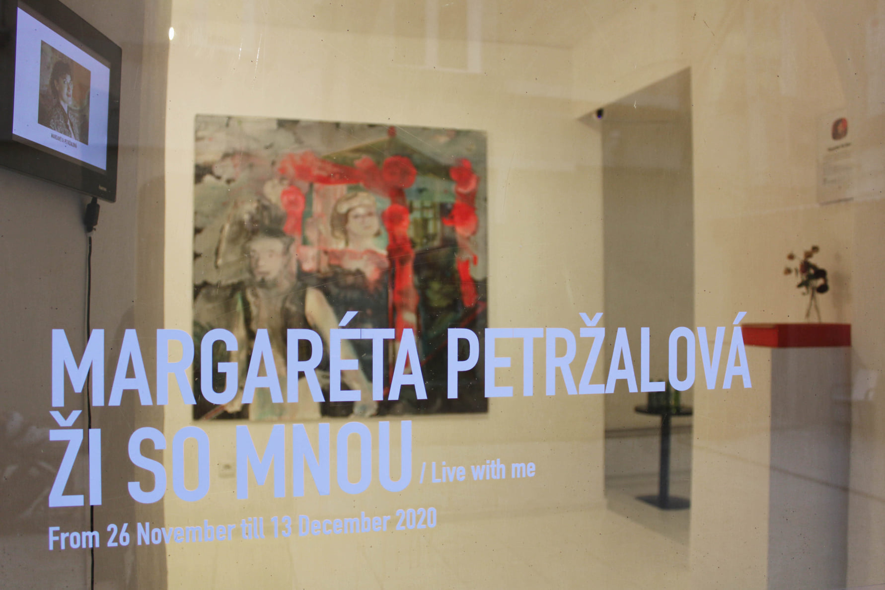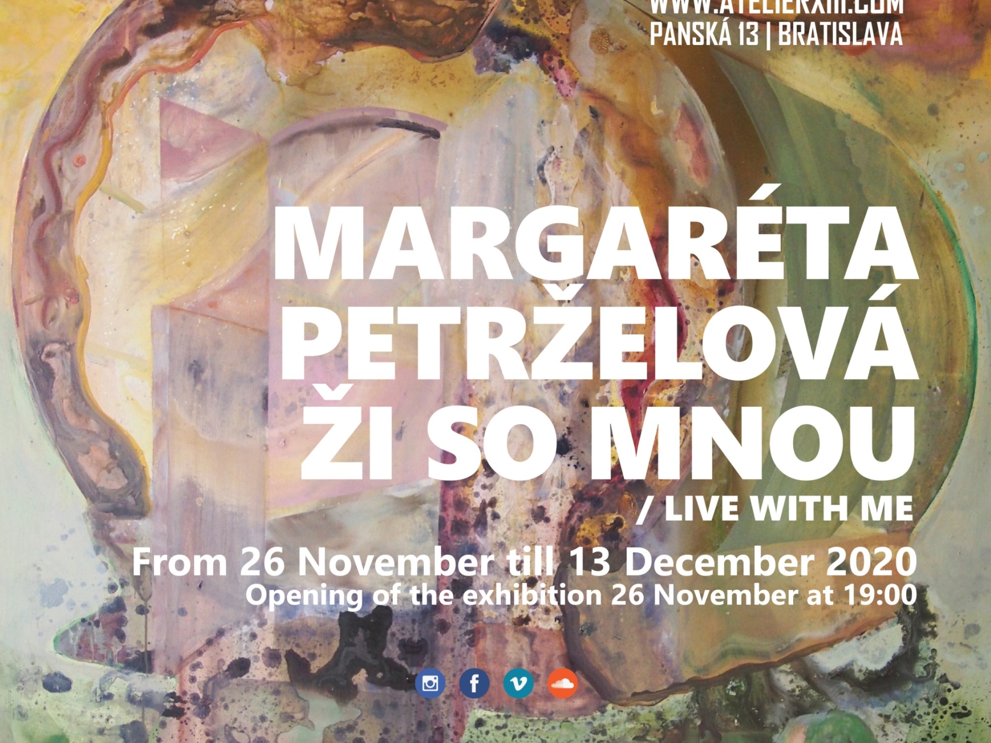 Výstava Margaréty Petržalovej s priamočiarym názvom Ži so mnou je osobnou sondou umelkyne na tému partnerského spolužitia. Skúma špecifickú dynamiku vzťahu a potrieb ‘praktického chlapa’ túžiaceho po teple domova a umelkyne, ktorá sa identifikuje ako maliarka, keramička, zberateľka, nomádka, princezná, budoárová dáma. Ak by mal teda budoár štyri kolesá a jej kráľovstvo by sa nachádzalo nie na pevnom mieste, ale v čase. Margarétina láska k veciam z bazárov, predovšetkým ku starým lekárničkám, je bezhraničná a vytvára z nich čarovné objekty koketujúce s gýčom. Jej partner si musí zvykať nielen na jej neustále zdobenie všetkého maľovaním, falošnou intarziou či keramikou, ale aj na Margarétinu prirodzenosť zapúšťať korene do ľudí namiesto do miest. A možno aj na to, že je na týchto najnovších, intímnych a zároveň láskavo humorných (auto)portrétoch prítomný neoddeliteľne a navždy s ňou. Na obrazoch (a zatiaľ v jej fantázii) ju v ľudovom kroji nosí v čínskom sedan chair alebo spoločne ležia v akejsi gondolovej posteli s barokovým anjelíčkom na čele. Oproti predošlým figuratívnym maľbám však Margaréta stíšila kontrasty a ostré prechody farieb a foriem v prospech citlivejšej polohy. S farbou však stále narába hedonisticky, využíva jej potenciál vytvárať štruktúry a navodzovať rozličné materiály pomocou rozpíjania a uvoľneného rukopisu. Výstava Ži so mnou je dvojitou výzvou – pre Margarétiných najbližších, ale aj známo-neznámych galerijných návštevníkov a návštevníčky. Ako hovorí: ”Divák či diváčka si zvolí, či bude žiť s mojím umením. Lukáško si zvolil, že bude žiť so mnou.”